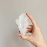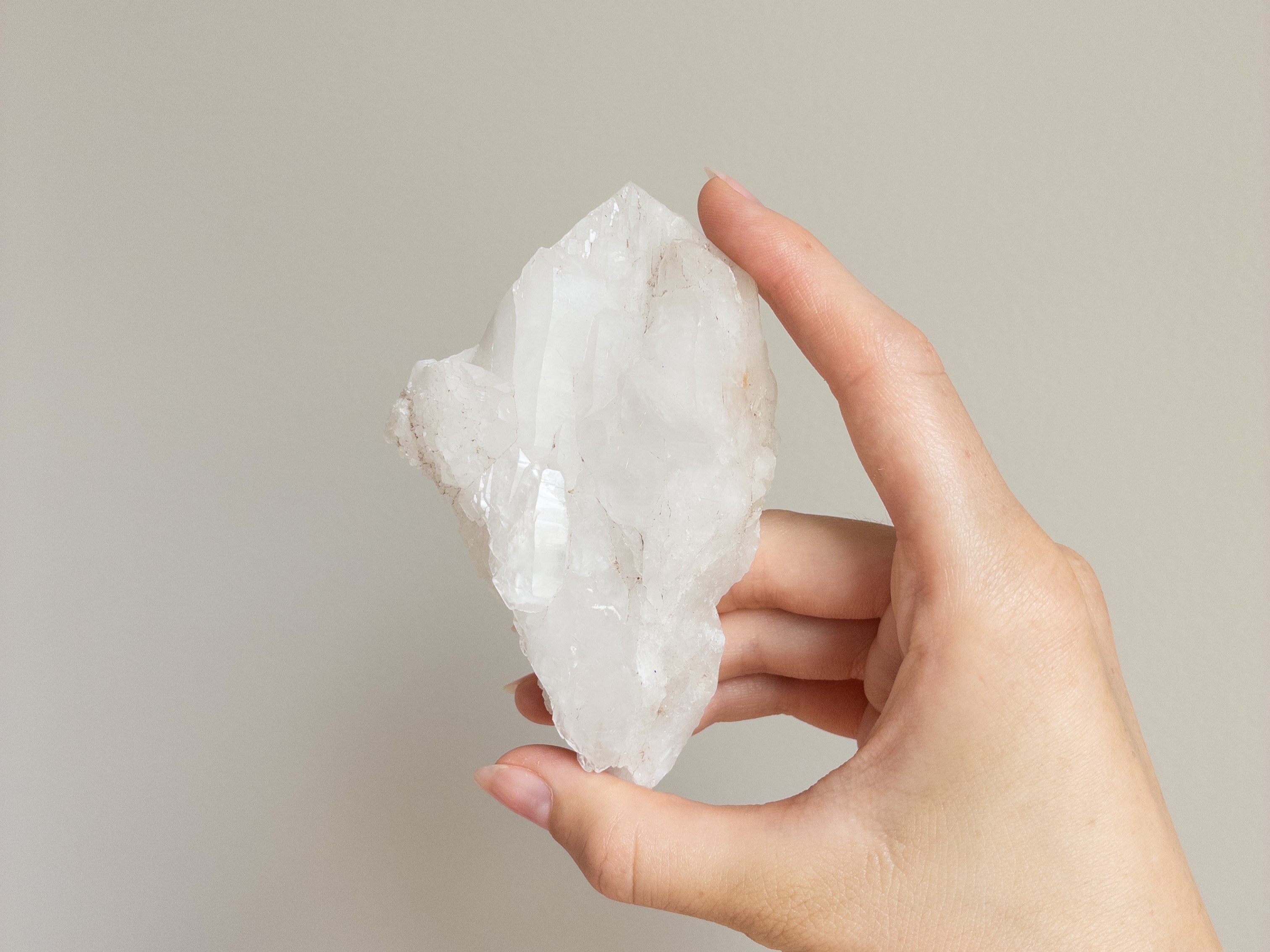 Fun Fact: Quartz crystals like this one are formed over thousands of years, with each one taking on a unique shape and texture. While it may have a slightly milky or frosted appearance, this is a natural feature that occurs when gas bubbles or mineral inclusions become trapped inside the crystal during its formation.