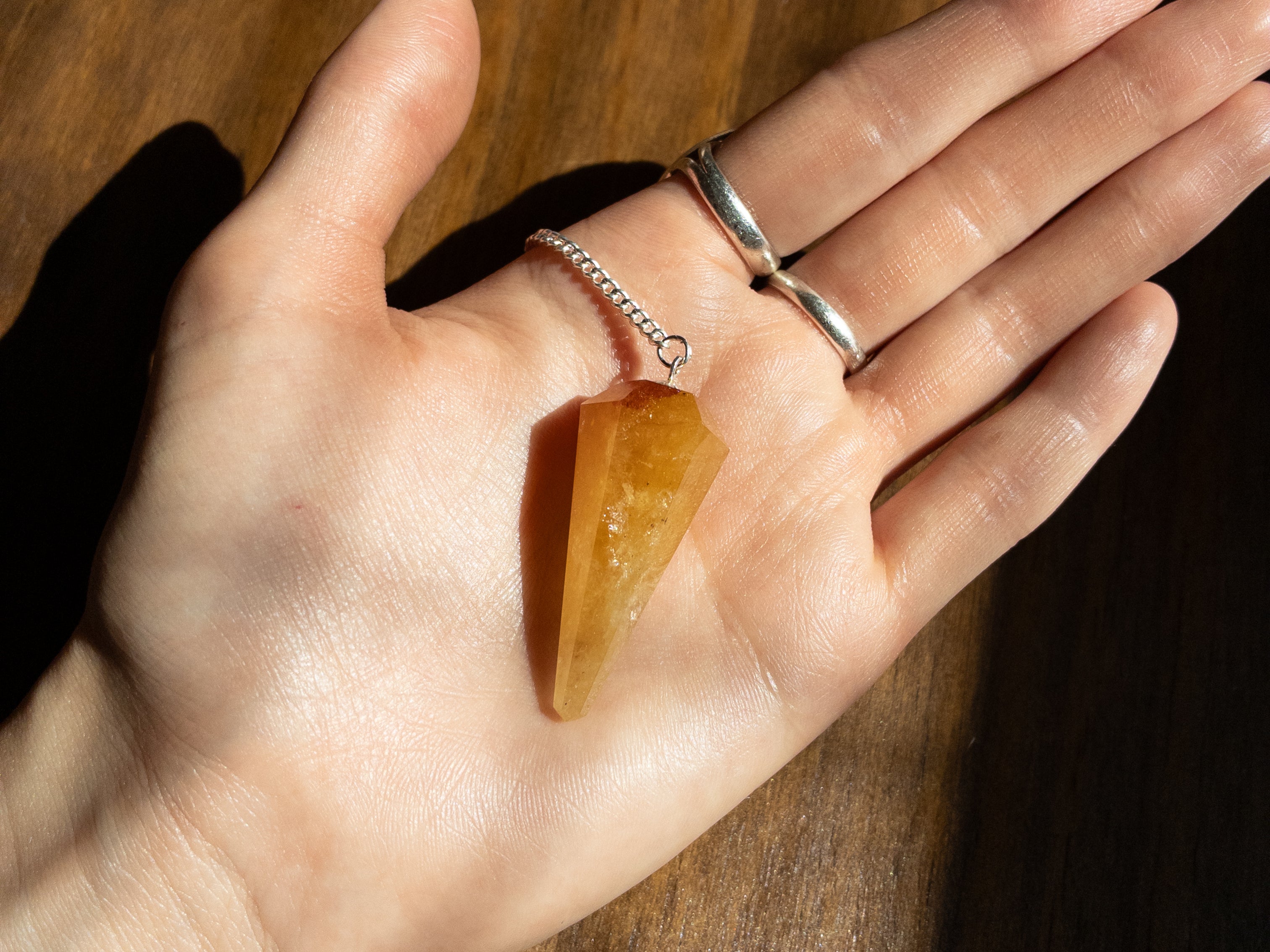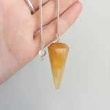 Our traditional pendulums are beautifully versatile, with a sleek, timeless design. More than just practical tools for divination, they also make stunning accessories or thoughtful gifts. Use them to connect with your intuition, gain insight, make decisions, or even locate lost items. Whether you're looking for guidance or simply drawn to their mystical charm, pendulums are a must-have for anyone in search of clarity and connection. Golden Healer Quartz is a vibrant quartz crystal infused with iron oxide, prized for its golden glow and connection to healing and spiritual transformation.