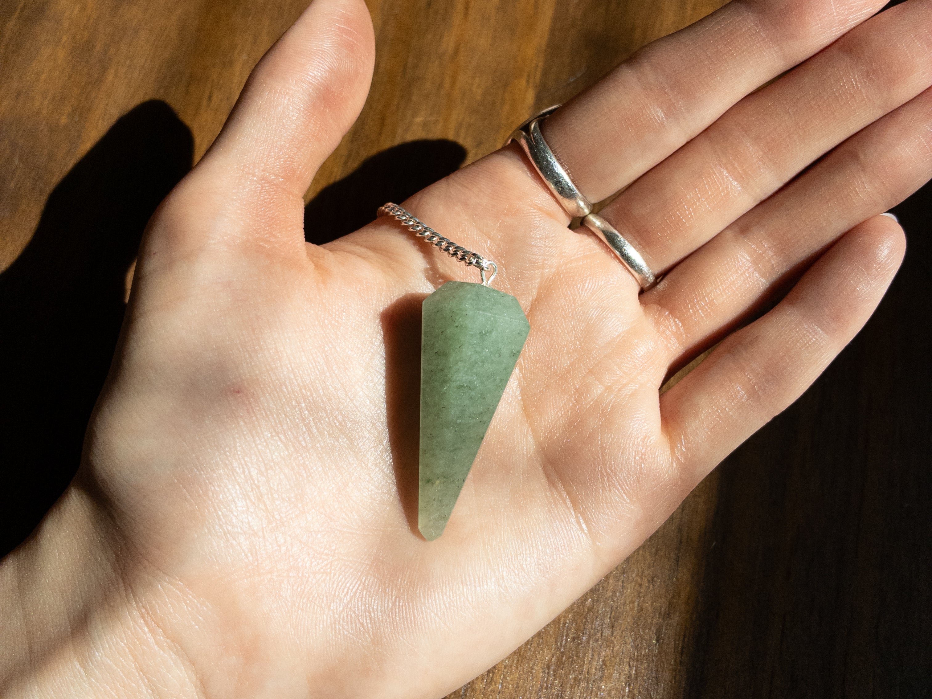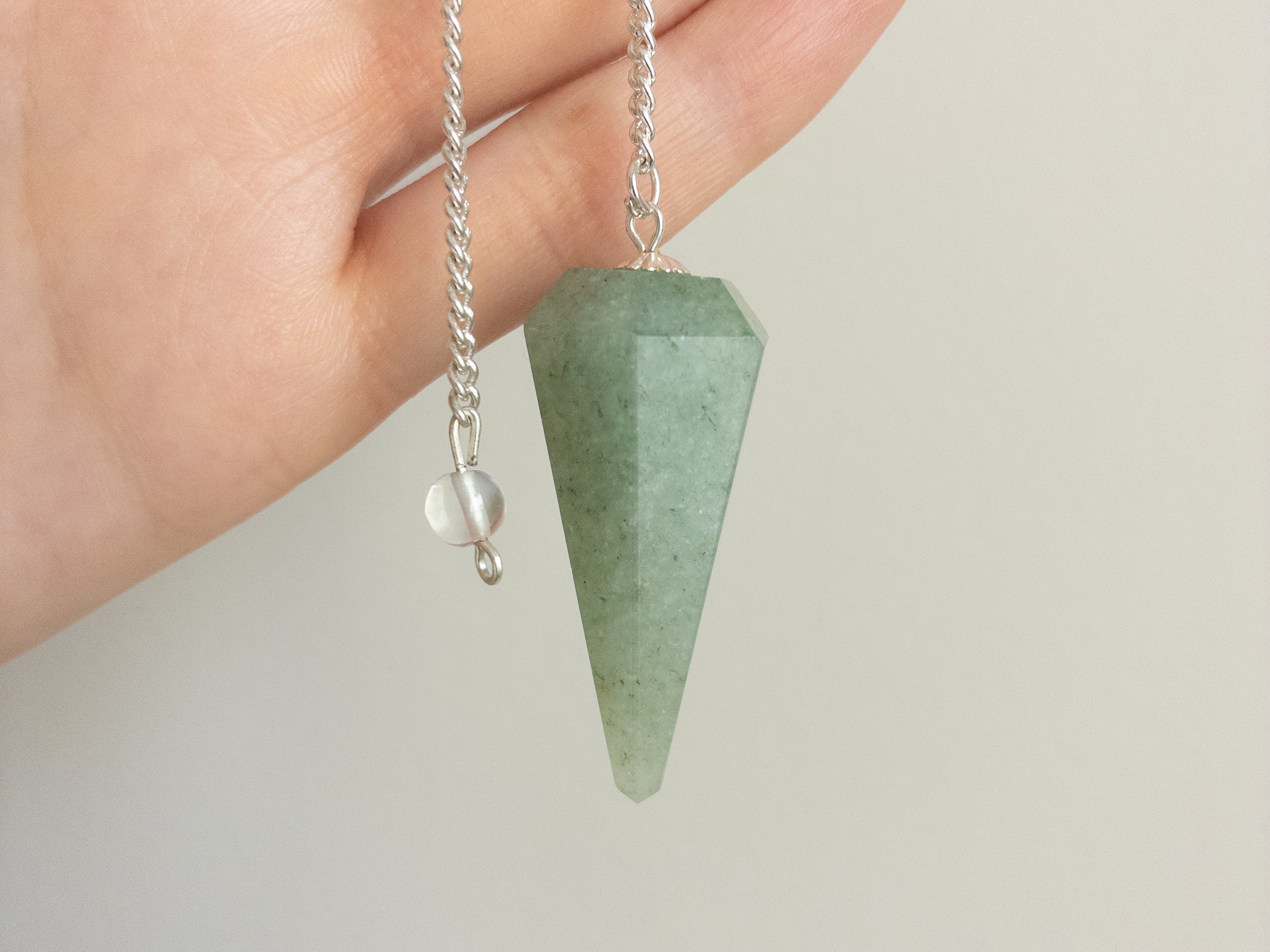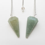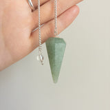 Our traditional pendulums are beautifully versatile, with a sleek, timeless design. More than just practical tools for divination, they also make stunning accessories or thoughtful gifts. Use them to connect with your intuition, gain insight, make decisions, or even locate lost items. Whether you're looking for guidance or simply drawn to their mystical charm, pendulums are a must-have for anyone in search of clarity and connection. Green Aventurine is a sparkly, forest-green quartz, believed to attract abundance and prosperity.