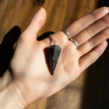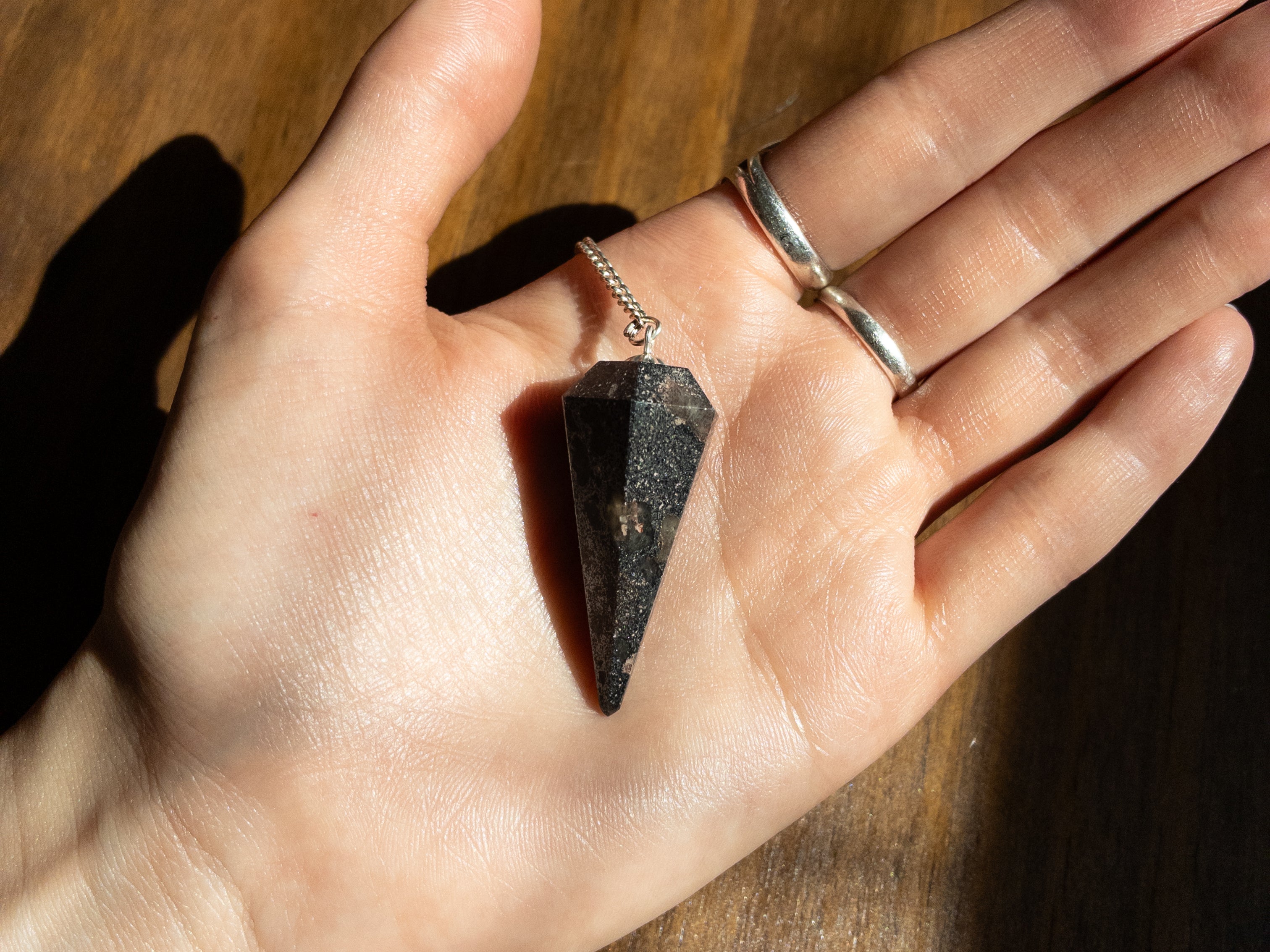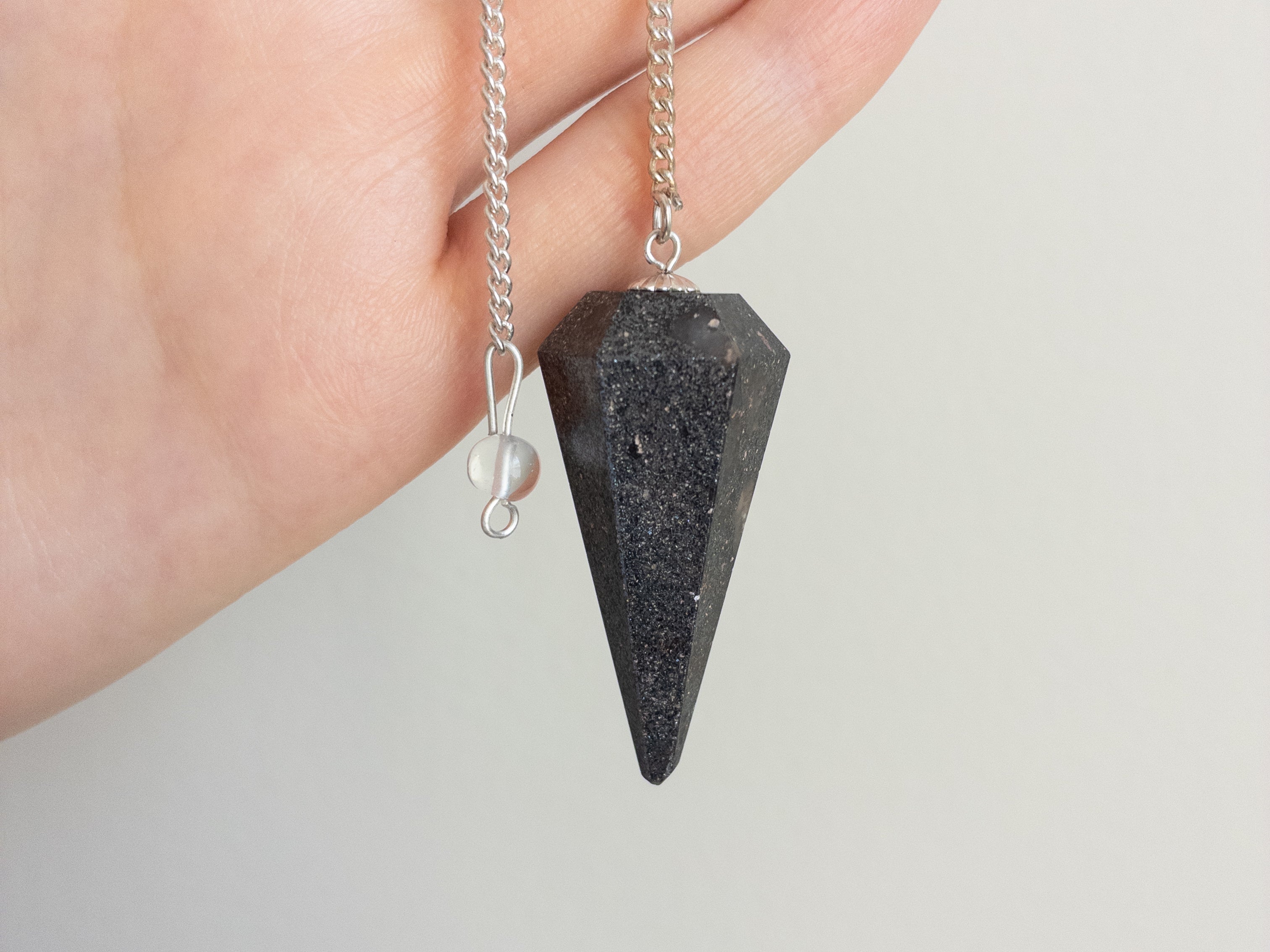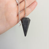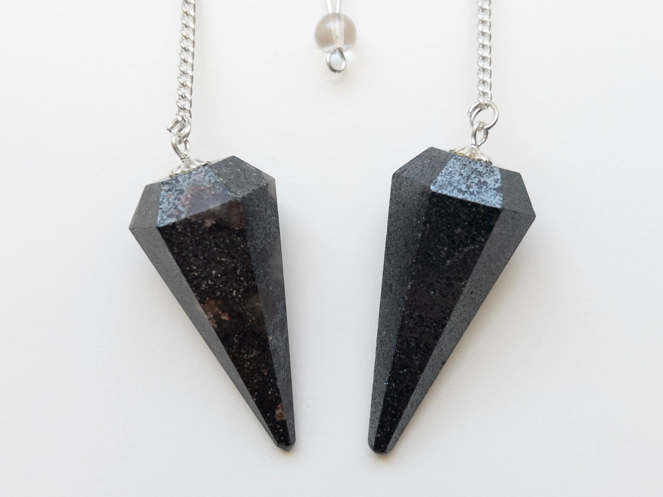 Our traditional pendulums are beautifully versatile, with a sleek, timeless design. More than just practical tools for divination, they also make stunning accessories or thoughtful gifts. Use them to connect with your intuition, gain insight, make decisions, or even locate lost items. Whether you're looking for guidance or simply drawn to their mystical charm, pendulums are a must-have for anyone in search of clarity and connection. Hematite is a metallic gray iron-rich stone known for its strong grounding energy and ability to absorb negativity.